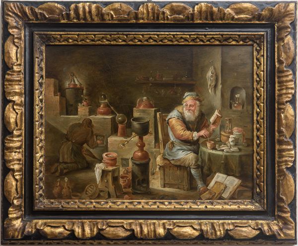 Scena d'interno bottega, Scuola fiamminga XIX secolo