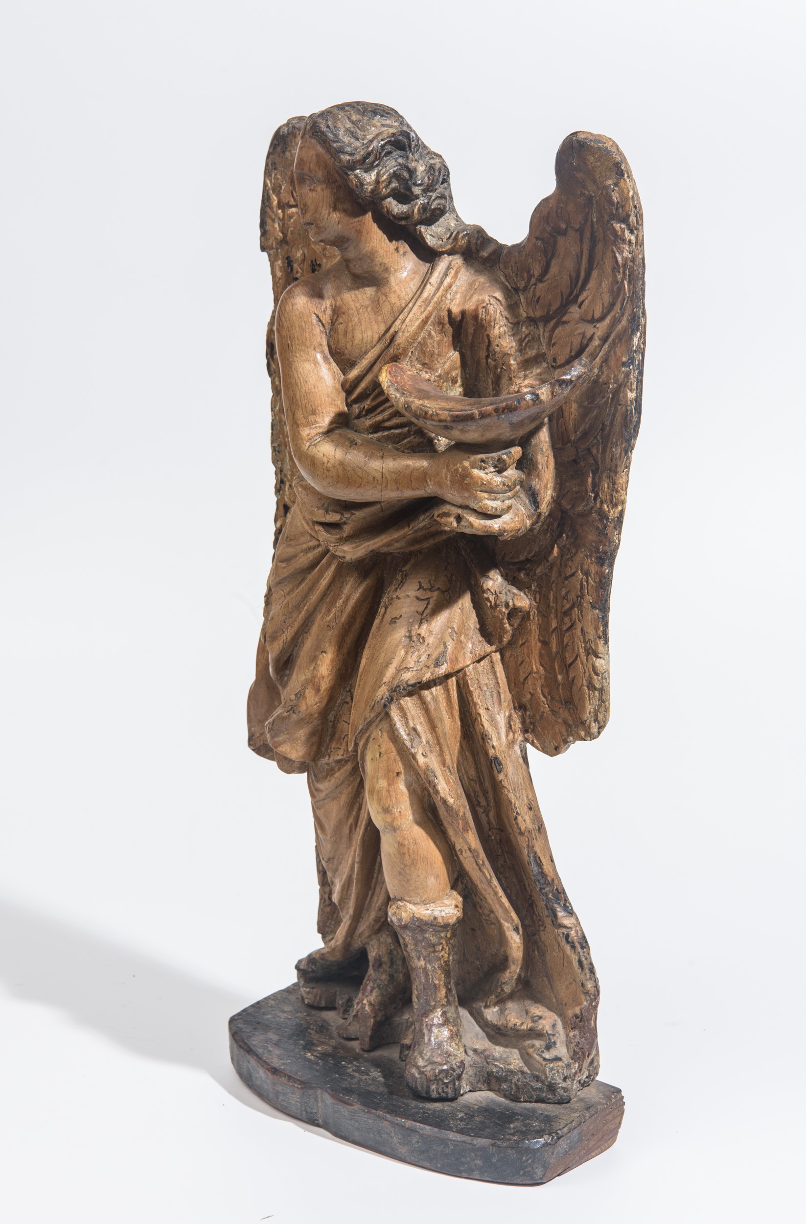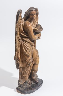 Scultura raffigurante angelo in legno intagliato e dorato, XIX secolo