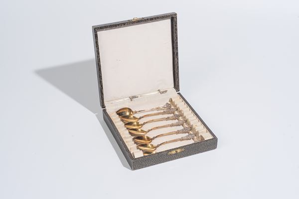 Sette cucchiaini in argento vermeil, Italia, XX secolo