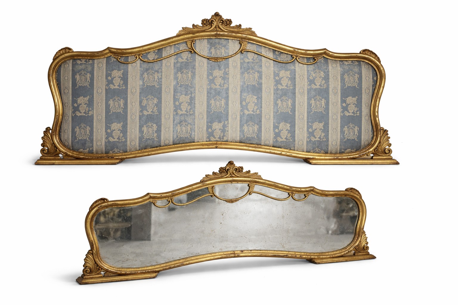 Testiera: h. 90 x 180 cm; specchiera: h. 75 x 180 cm.
