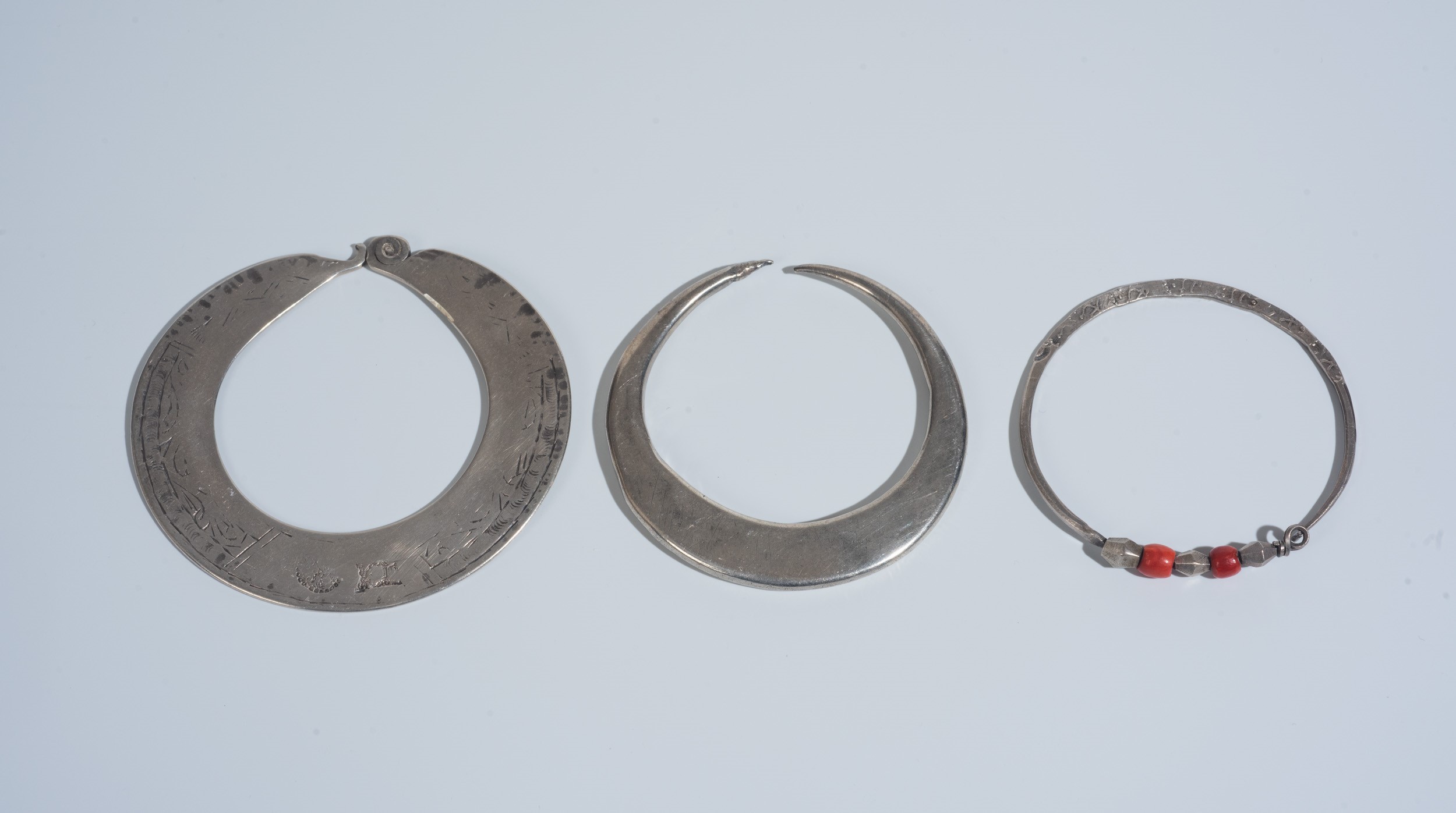 Tre bracciali in argento, Manifattura orientale, XX secolo