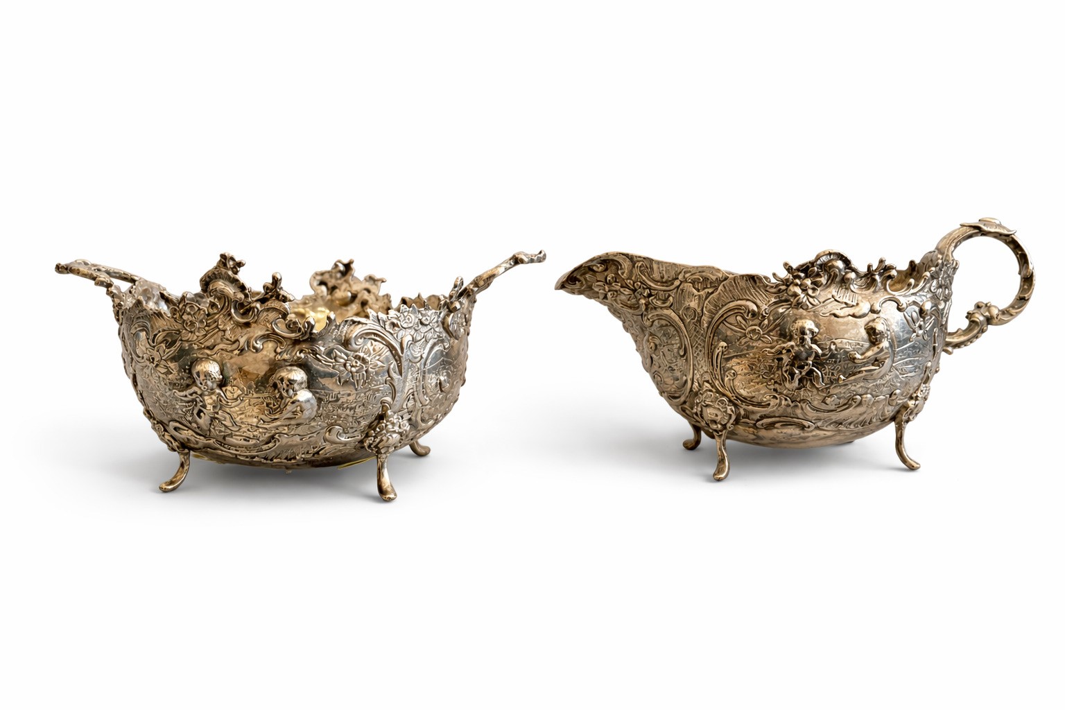 Zuccheriera e salsiera in metallo argentato, Italia, XX secolo